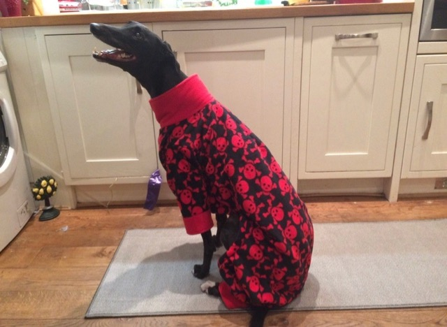 Greyhound/Sighthound pyjamas are a bit of a love/hate thing; your Greyhound/Sighthound either loves them to bits or will run a mile if you go anywhere near them with a pair!